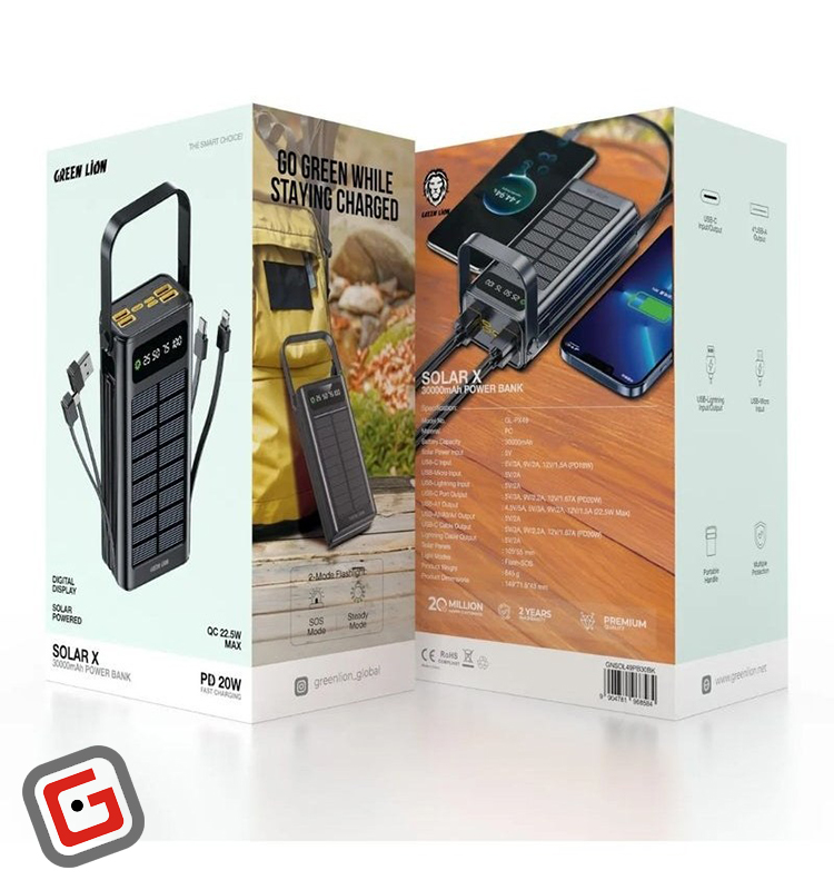 پاوربانک 20 وات گرین لاین مدل Solar X ظرفیت 30000 میلی آمپر ساعت