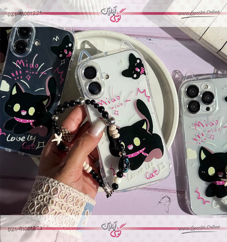 قاب گربه مشکی گوش دار با آویز (کدC2131)