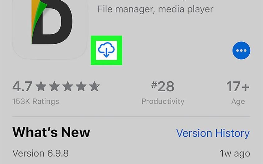 1- در فروشگاه اپل یا اپ استور ( App Store )، عبارت Readdle را جستجو و اپلیکیشن Documents by Readdle را مطابق تصویر زیر، دانلود و نصب کنید.