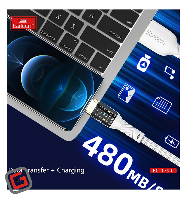 کابل تبدیل 100 واتی USB به USB-C ارلدام مدل EC-179c به طول 1 متر