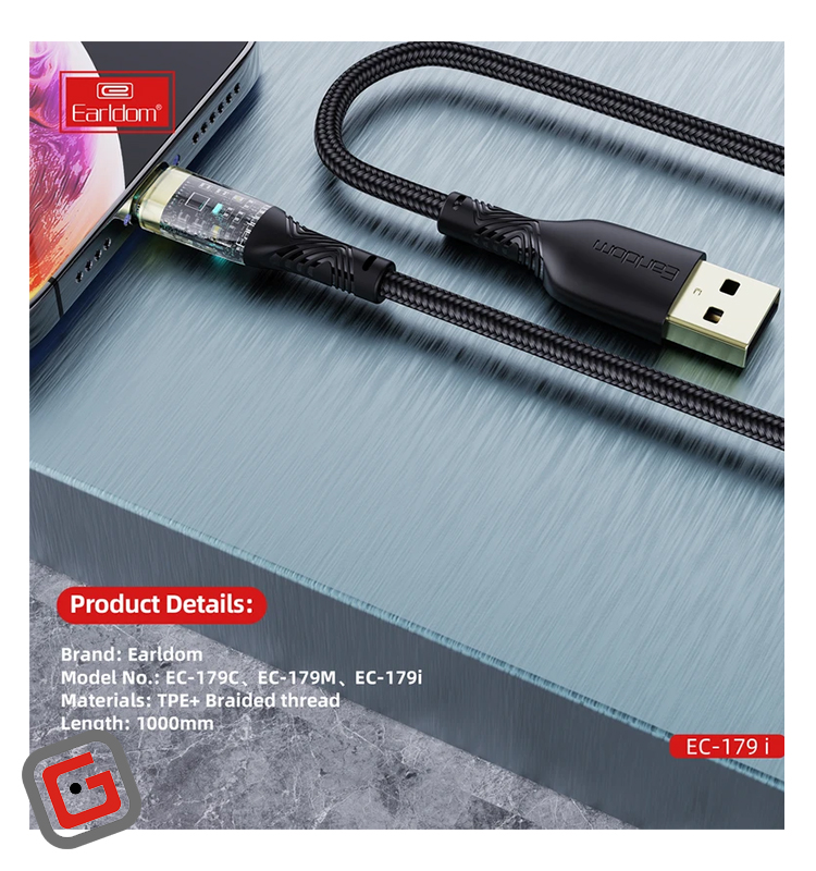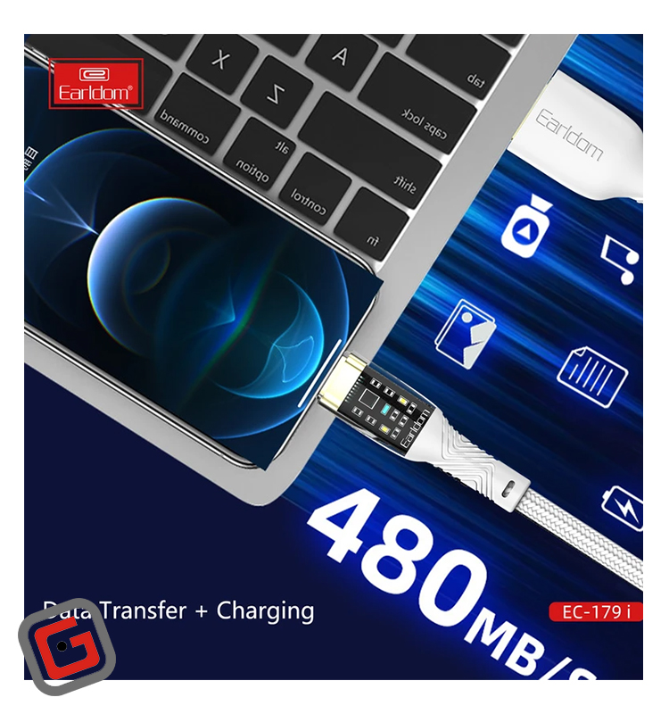 کابل تبدیل 3 آمپر USB به لایتنینگ ارلدام مدل EC-179i به طول 1 متر