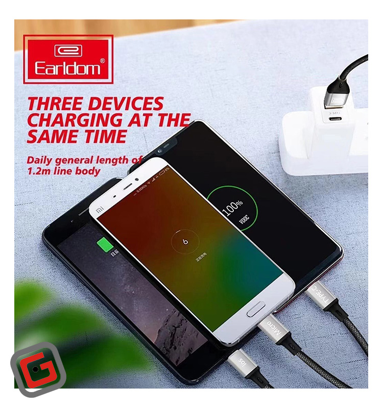کابل تبدیل 3 سر فست شارژ ارلدام مدل EC-IMC017 طول 1.2 متر