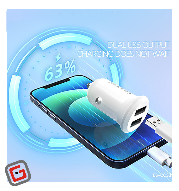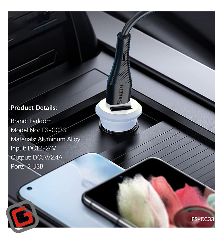 شارژر فندکی فست شارژ ماشین 2.4 آمپر ارلدام مدل ES-CC33