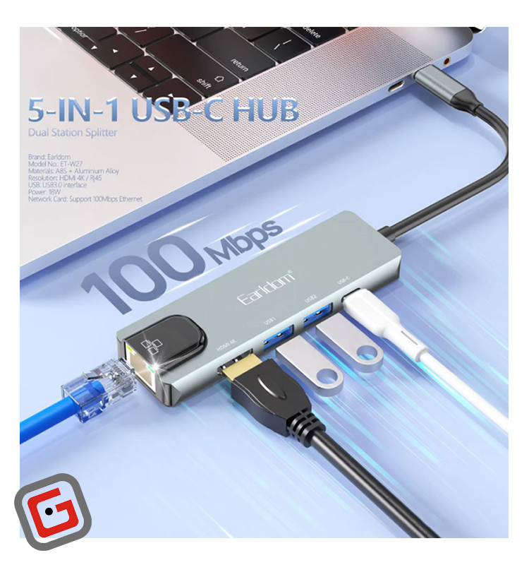 Earldom ET-W27 Type-C To USB3.0/USB2.0/HDMI/RJ45/Type-C HUB