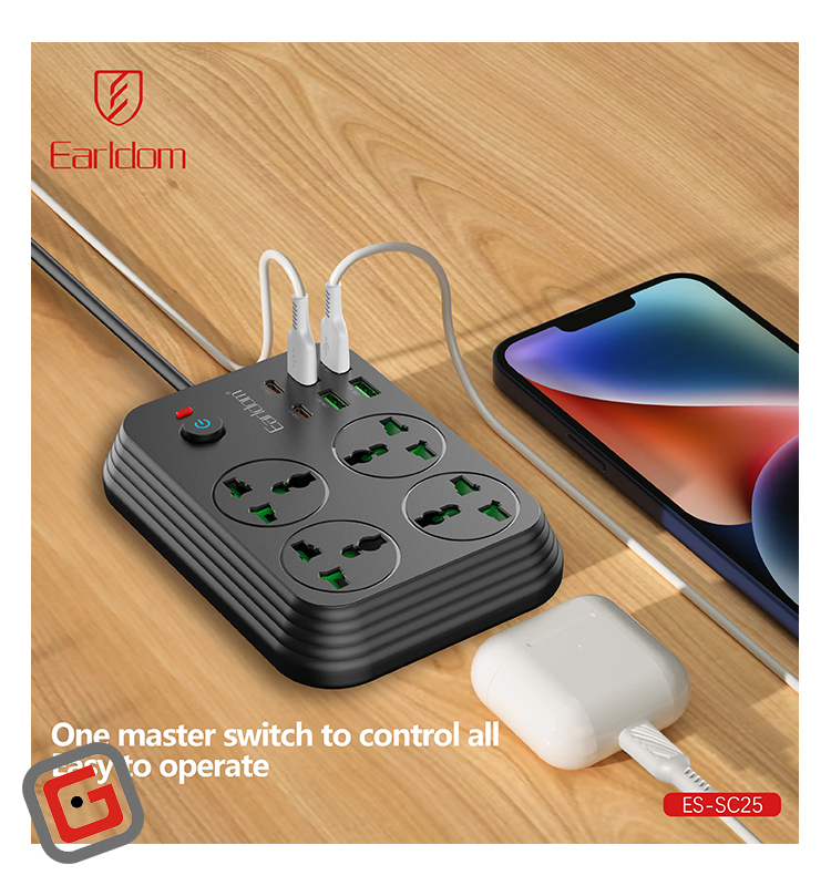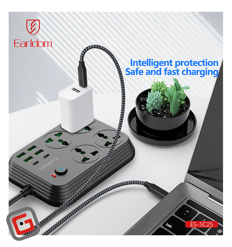 چند راهی برق هوشمند 3000 وات ارلدام مدل ES-SC25 با کابل 2 متری + شارژر USB و Type-C