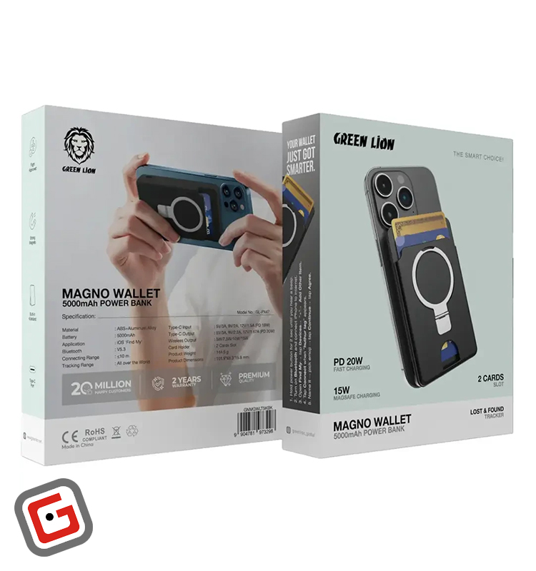 پاوربانک مگ سیف و جاکارتی گرین لاین مدل Magno Wallet ظرفیت 5000 میلی آمپر ساعت