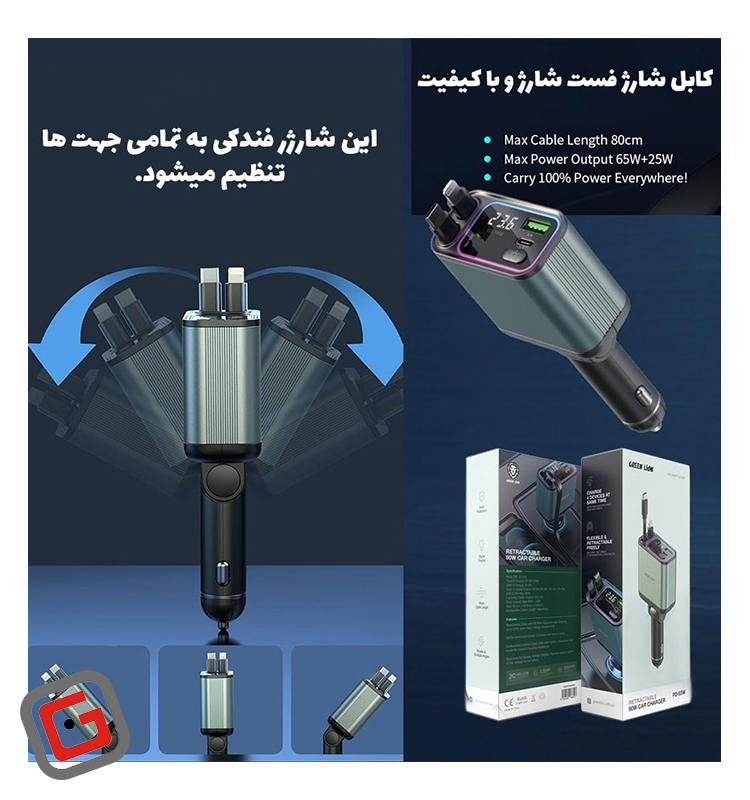 شارژر فندکی فستشارژ گرین لاین 90 واتی