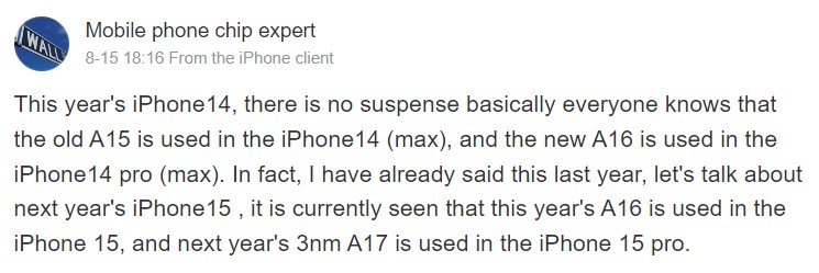 با اینکه سری آیفون 14 هنوز معرفی نشده، ولی اخبار جدیدی از تراشه نسل بعدی آن، یعنی سری آیفون 15 منتشر شده است. کمتر از یک ماه دیگر سری جدید گوشیهای هوشمند اپل، خانواده آیفون ۱۴ به صورت رسمی معرفی خواهد شد، اما این برای نخستین بار است که این شرکت آمریکایی گوشیهای هوشمند خود را با دو پردازنده متفاوت تولید و عرضه خواهد کرد. همچنین بهنظر میرسد که در سال ۲۰۲۳ نیز این استراتژی به قوت خود باقی خواهد ماند و نسخه پرو از آیفونها در آن سال، یعنی آیفون ۱۵ پرو و آیفون ۱۵ پرو مکس با تراشه A17 Bionic با لیتوگرافی ۳ نانومتری معرفی خواهند شد.