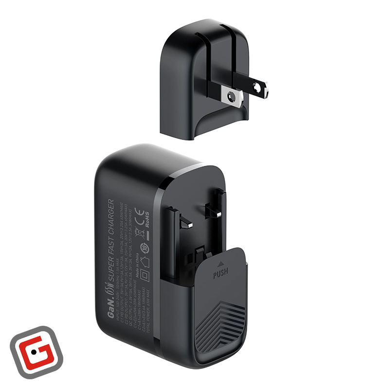 5 ولت ⎓ 3 آمپر , 9 ولت ⎓ 3 آمپر , 12 ولت ⎓ 3 آمپر , 15 ولت ⎓ 3 آمپر , 20 ولت ⎓ 3.25 آمپر ( حداکثر 65 وات )