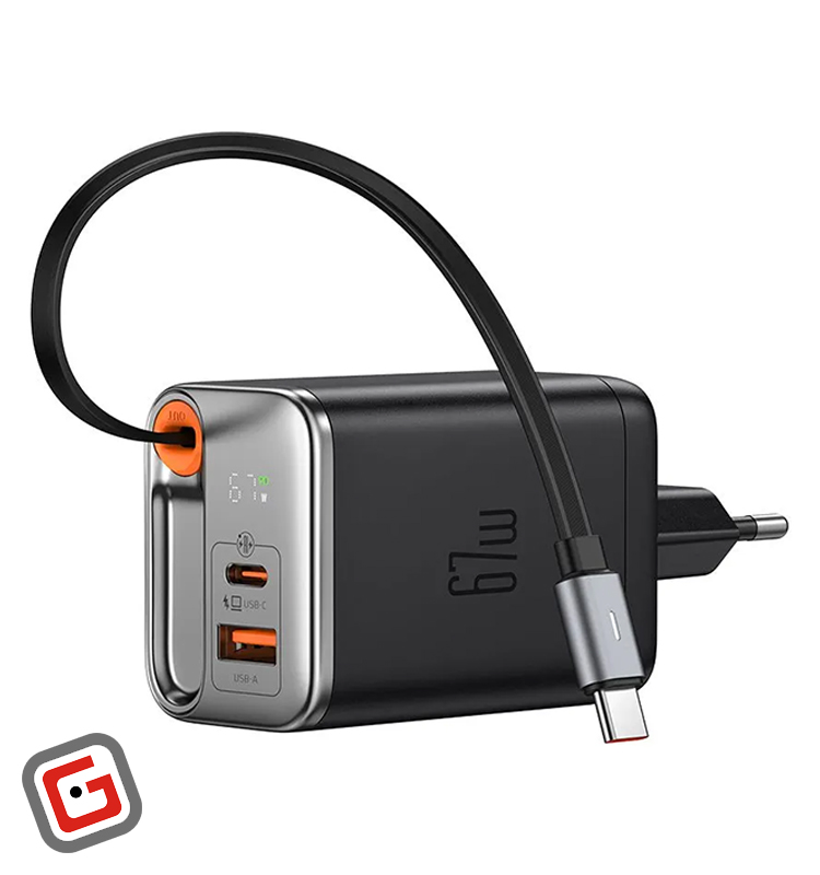مجموعا 3 پورت : یک کابل خروجی تایپ سی+ 1 پورت Type-C و یک پورت USB-A
