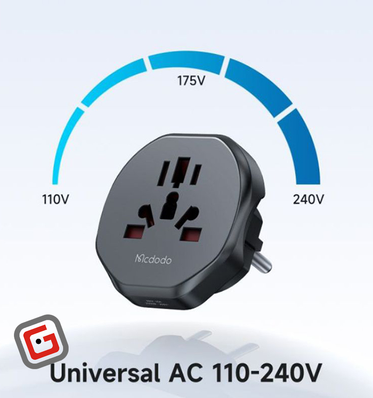 سازگاری با 8 مدل پریزهای استاندارد بیش از 200 کشور دنیا دارای دو شاخه های استاندارد CN-1 , CN-2 ,UK , US , EU , AU