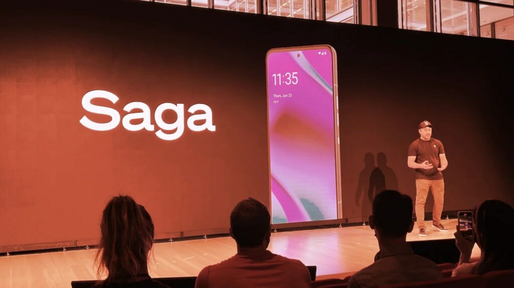 سولانا شرکت فعال در حوزه بلاکچین، به همراه اعضای سابق برند Essential که در شرکت Osom فعالیت میکنند، به طور رسمی گوشی پرچمدار جدیدی را با عنوان «Saga»، و تمرکز بر قابلیتهای کریپتویی معرفی کردند. سولانا اعلام کرده، این گوشی با قیمت 1000 دلار و در اوایل سال 2023 وارد بازار خواهد شد.