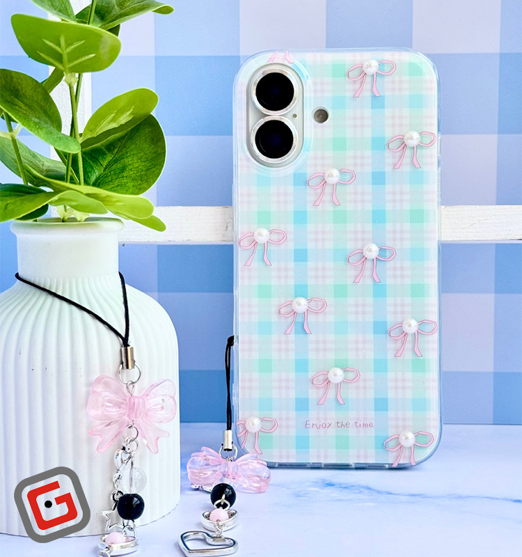 Pink bow tie with pendant phone case