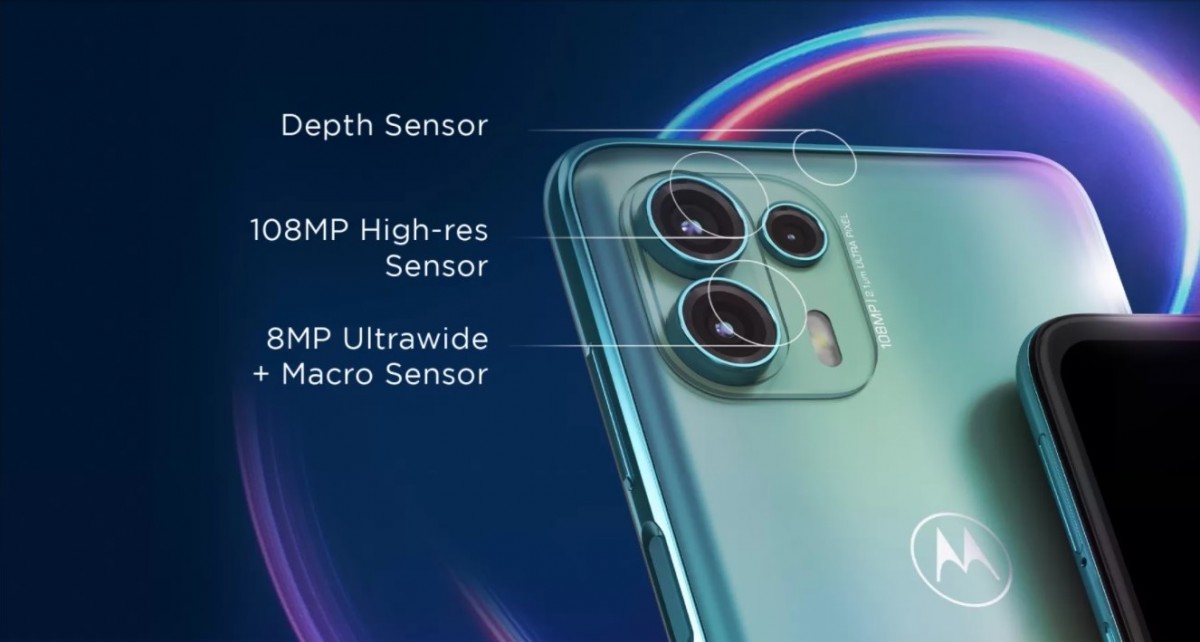 در پنل پشتی Edge 20 Fusion شاهد یک ماژول دوربین سهگانه هستیم که از یک دوربین 108 مگاپیکسلی عریض با دریچع دیافراگم f/1.9، دوربین 8 مگاپیکسلی فوق عریض با زاویه دید 118 درجهای و یک دوربین دو مگاپیکسلی تشخیص عمق تشکیل شدهاست.
