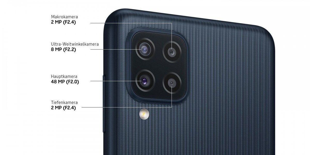 در پنل پشتی سامسونگ M22 شاهد یک ماژول دوربین چهارگانه مربعی شکل هستیم.