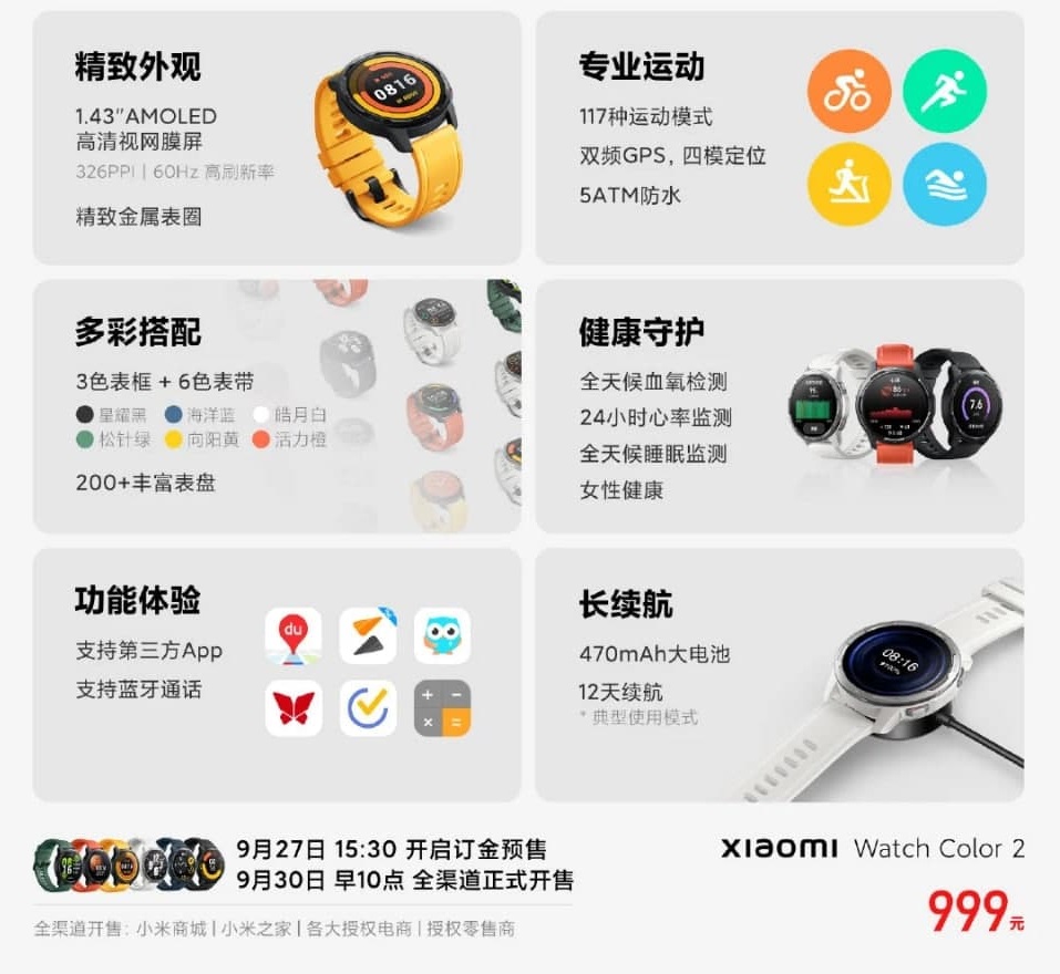 ساعت Watch Color 2 قرار است 8 مهرماه با قیمت حدود 155 دلار در شش رنگ مشکی، آبی، سبز، سفید، قرمز و زرد فعلا در بازار چین عرضه شود و شیائومی به زودی برنامهی خود را برای عرضهی جهانی این ساعت اعلام میکند.