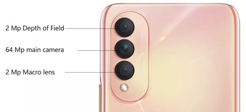 به سراغ دوربینهای این محصول جدید میرویم. در پنل پشتی آنر X20 SE شاهد یک ماژول دوربین سهگانه هستیم که از یک دوربین 64 مگاپیکسلی عریض با دریچه دیافراگم F/1.9، دوربین 2 مگاپیکسلی ماکرو با دریچه دیافراگم f/2.4 و در آخر یک دوربین دو مگاپیکسلی تشخیص عمق تشکیل شده است.