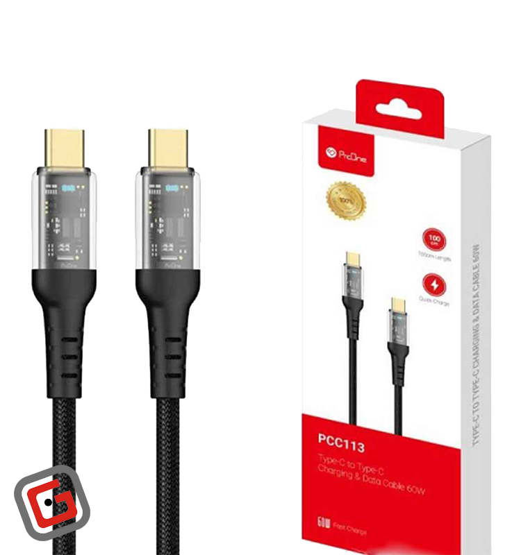 کابل شارژ 60 واتی Type-C پرووان مدل PCC113 به طول 1 متر
