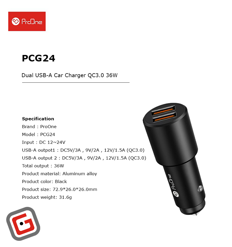 شارژر فندکی 36 وات پرووان مدل PCG24