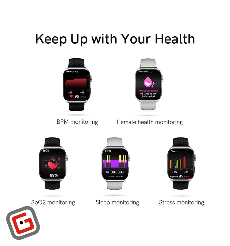 دارای قابلیتهای تایمر، کرونومتر، زنگ هشدار، یادآوری کمتحرکی، کنترل موسیقی، پیشبینی آب و هوا، یادآوری نوشیدن آب، کنترل عکس، بیدار شدن و...
