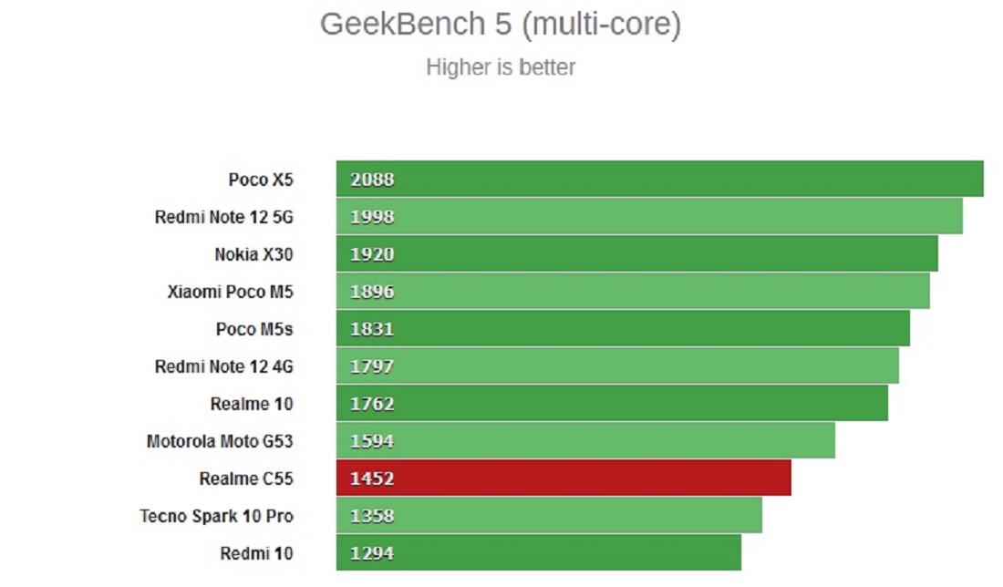 تست بنچمارک پردازنده Realme C55 ( چند هسته ای ) از سایت GeekBench.com