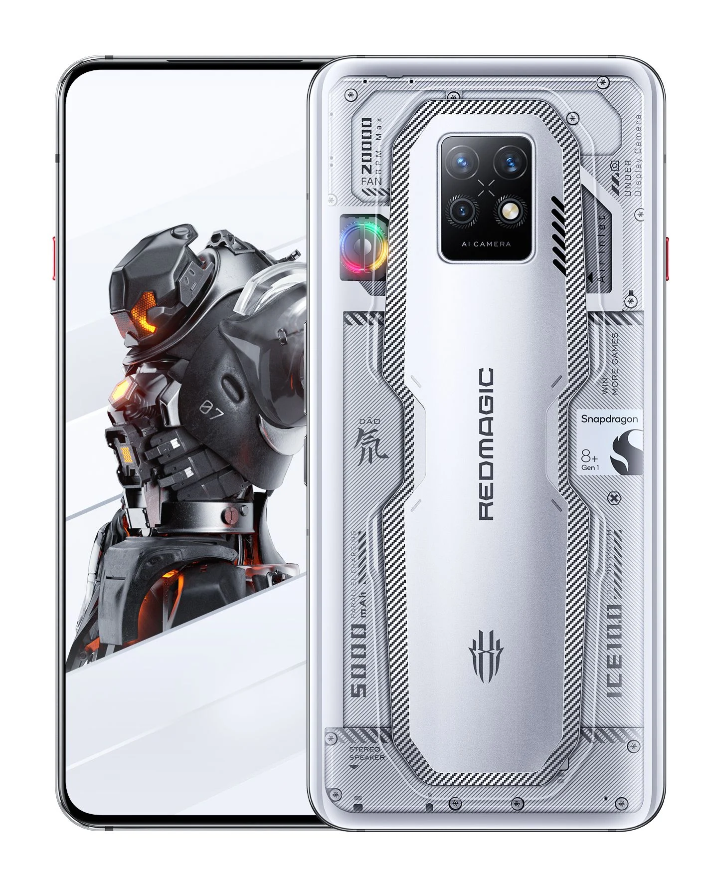 با توجه به رندرها منتشر شده، رد مجیک 7 اس پرو دارای پنل پشتی نقرهای و شفاف با یک فن سانتریفیوژ و نور RGB با حداکثر 20 هزار دور در دقیقه، فلش LED، ماژول دوربین سهگانه و ورودی هوا در نیمه بالایی مجهز شده است. این دستگاه به تریگرهایی برای تجربه گیمینگ بهتر همراه شده است. با دقت در سایر قسمتهای پنل پشتی رد مجیک 7 اس پرو درمیابیم که این دستگاه از تراشه اسنپدراگون 8 پلاس نسل 1، باتری 5000 میلیآمپرساعت و فنآوری خنککننده مایع ICE 10.0 بهره میبرد که با سوئیچ قرمز رنگی که در لبه سمت چپی قرار دارد، فعال میشود.