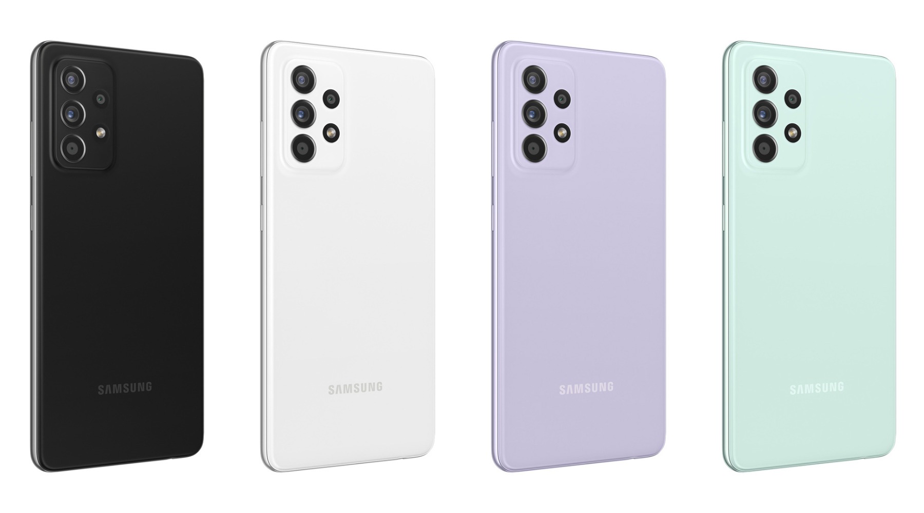 گلکسی A52s در چهار رنگ مشکی، سفید، سبز و بنفش روانه بازار شده است.