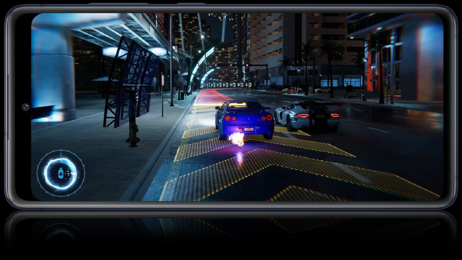 دوربین سلفی نیز در بالای پنل جلویی در پانچ هول جانمایی شده است و حسگر اثر انگشت در زیر نمایشگر قرار دارد.