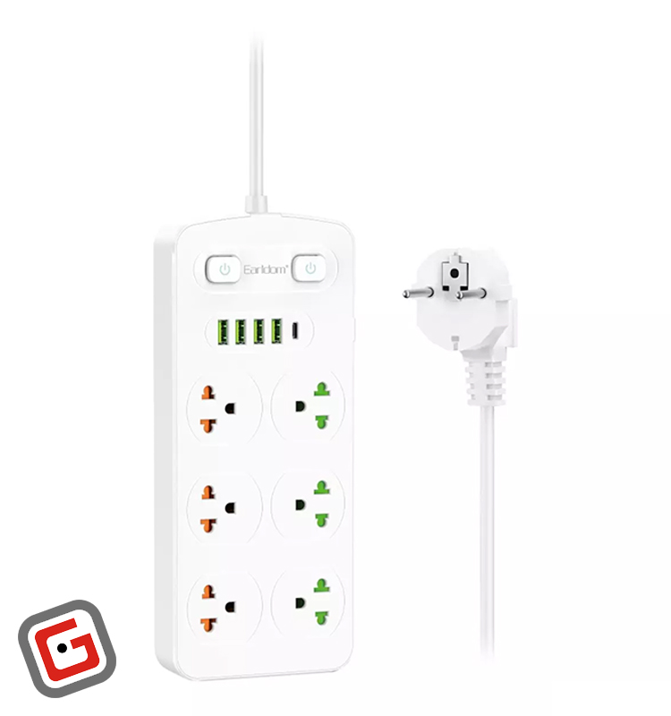 چند راهی برق هوشمند 2500 وات ارلدام مدل ES-SC09 با کابل 2 متری + شارژر USB و Type-C