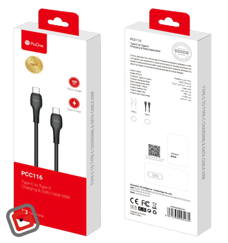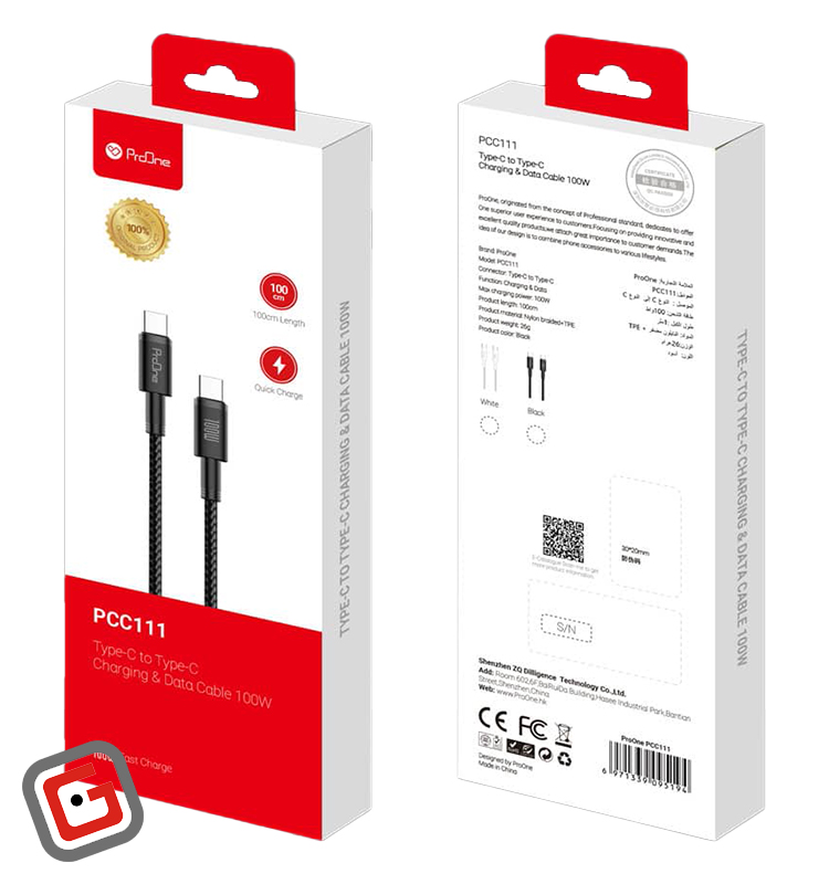 کابل شارژ 100 واتی Type-C پرووان مدل PCC111 به طول 1 متر
