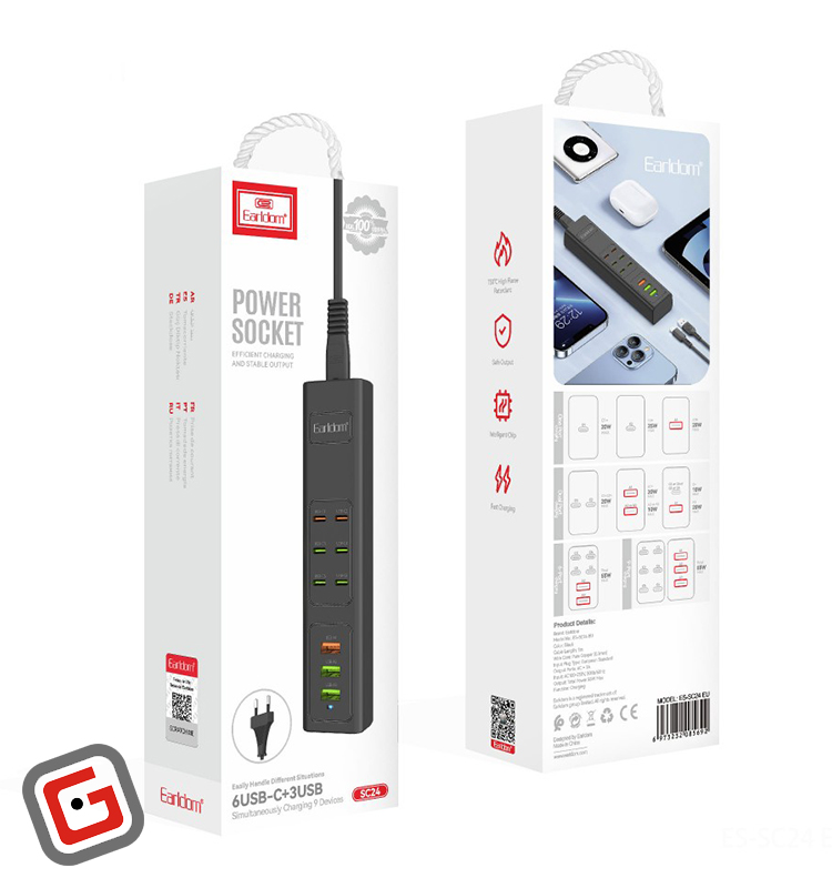 چندراهی شارژ هوشمند ارلدام مدل ES-SC24 با کابل 1 متری + شارژر USB و Type-C