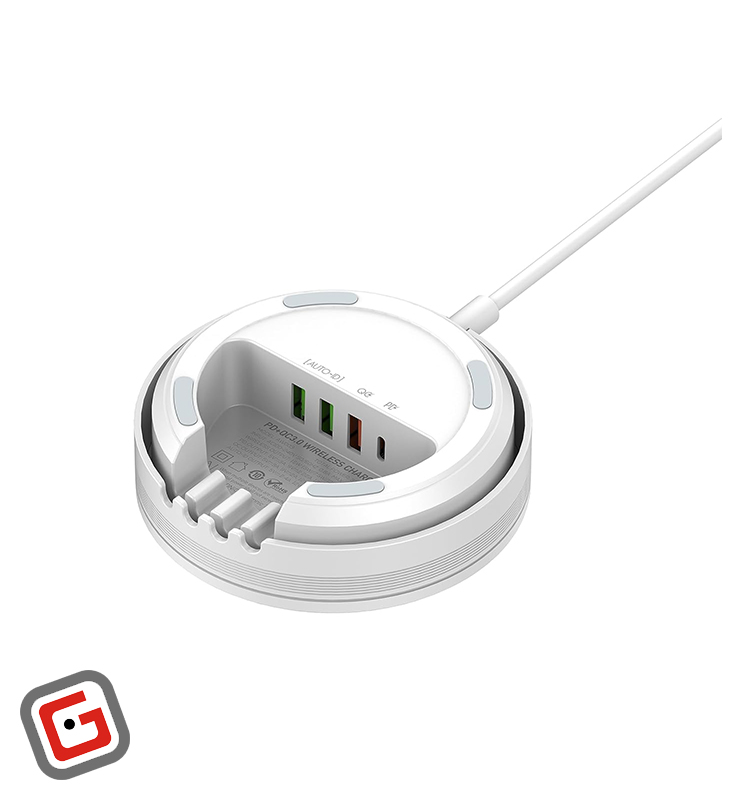 هاب 4 پورت و شارژر وایرلس الدینیو مدل AW004 توان 32 وات