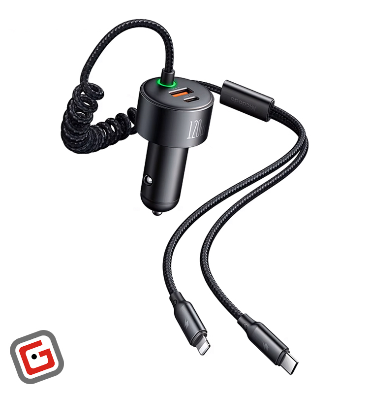 شارژر فندکی مک دودو مدل CC-037 توان 120 وات با دو کابل متصل